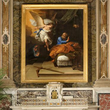 En 1664, Jean Deydé commande en hommage à son père Joseph Deydé un grand tableau d’autel au peintre Nicolas Mignard (1606-1668) représentant l’apparition de l’ange à Joseph. Dans l’Évangile selon saint Matthieu, Joseph est visité à deux reprises par l’ange : une première fois, après l’Annonciation, afin de lui ordonner de garder auprès de lui Marie pour accomplir le mystère de l’Incarnation ; une seconde fois, après la Nativité, pour l’engager à fuir les soldats d’Hérode et se rendre en Egypte. C’est ce dernier passage qu’illustre le tableau de Mignard.