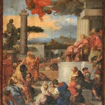 C’est un chef-d’œuvre par la composition grandiose, équilibrée et claire malgré plus de trente personnages et par la richesse des coloris et la finesse des dessins. Il se situe dans la droite ligne du Dominiquin (1581-1641), de Nicolas Poussin (1594-1665) et des grandes compositions baroques avec un esprit novateur très marqué.